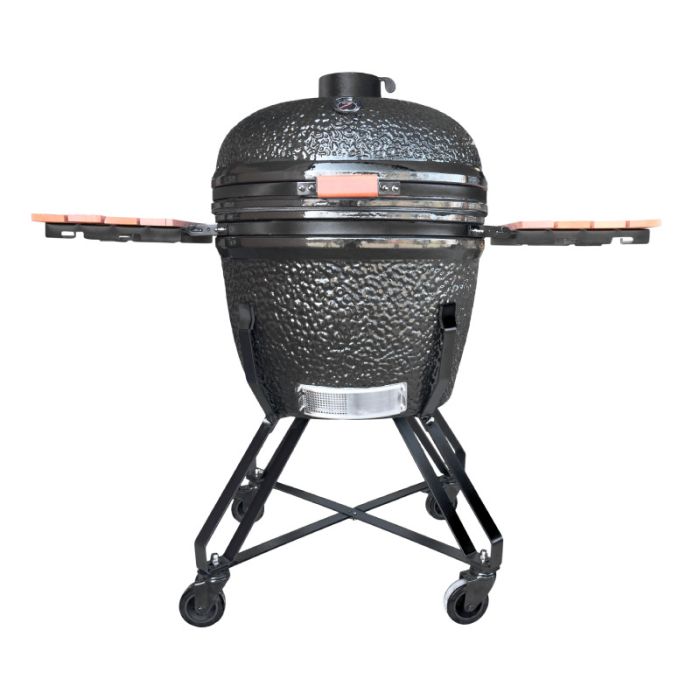 NEXT LEVEL BBQ-PLEZIER. Een kamado van 21 inch is mooi. Maar heb je echt grootse plannen, dan ga je voor een extra grote kamado. Deze Auplex kamado van maar liefst 26", oftewel een diameter van 66 cm, kan alles bereiden wat je bedenkt. Met recht een XXL te noemen! Een complete kalkoen? Meerdere ribeye steaks? MOINK balls voor je gehele voetbalteam? The sky is the limit, bij wijze van spreken. Deze Black Edition is geen doetje, maar een stevige, robuuste kamado. Uiteraard met een chique afwerking: dik, duurzaam keramiek (cordieriet), gietijzeren margrietschijf, rvs veren & bouten / moeren, gelakte bamboe houten zijtafels & handvat, gepoedercoat stalen banden & onderstel.